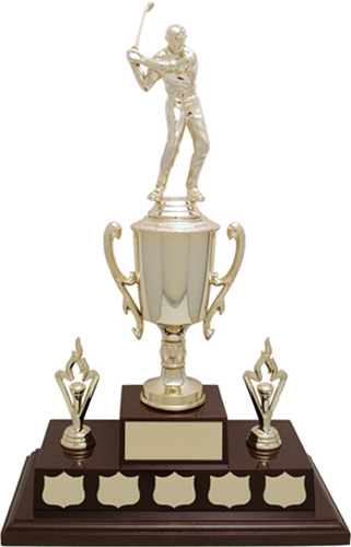 The Challice Cup is a classic trophy embodying the full tradition of the winners cup. The tiered base is a laminate rosewood. The Challice Cup can be used for a single presentation to one individual or celebrate team achievements. The metal cups are mounted on a laminate rosewood base and can be used as a perpetual trophy, adding the new winner of the trophy year after year, or transformed into a singular presentation trophy by changing the shield plates to a rectangular plate.