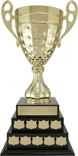 The Capri Cup is a classic trophy embodying the full tradition of the winner's cup. The base is a solid hardwood with a piano finish. Annual plates may be shaped as shown in the illustration or other shapes / styles may be selected to suit your award.