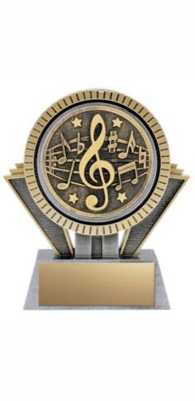 The Music Apex trophy is constructed using a resin material and is detailed in a hand painted finish. Commemorate your season with these beautifully designed resin trophies.