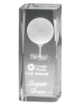 The 3D Golf Crystal Glass Award is reverse laser-engraved for a finely detailed image. |
