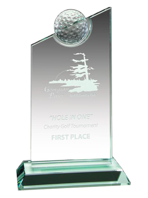 The Golf Angled Jade Glass Award is reverse laser-engraved for a finely detailed image. |