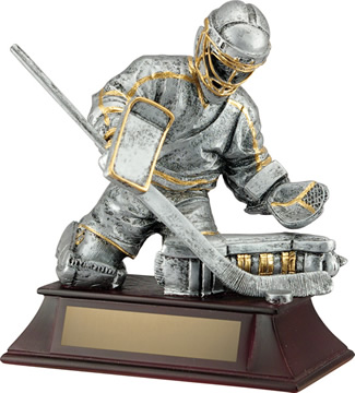 The Vintage Goalie trophy is constructed using a resin material and is detailed in a painted finish with gold detailing. Commemorate your season with these beautifully designed resin trophies.