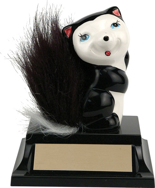 The skunk trophy is constructed using a ceramic material, with a furry tail and are detailed with a painted finish. Commemorate your season with these beautifully designed trophies.