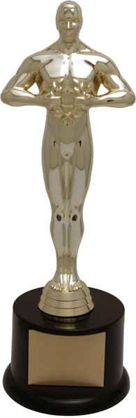 The Golden Achievement award is constructed using a shiny golden plastic material and is