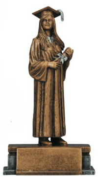 The Golden Graduate award is constructed using a resin material and is detailed in a painted finish. Recognize achievement with these beautifully designed resin trophies.