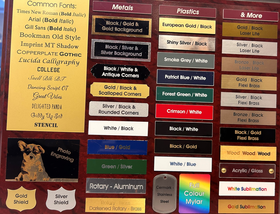Please visit our shop to see more engravable plates and shields we have to offer.