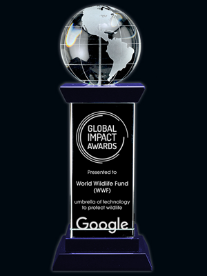 The Diplomat Optic Crystal Globe Award is reverse