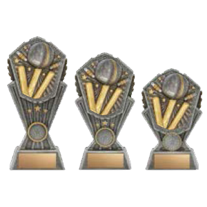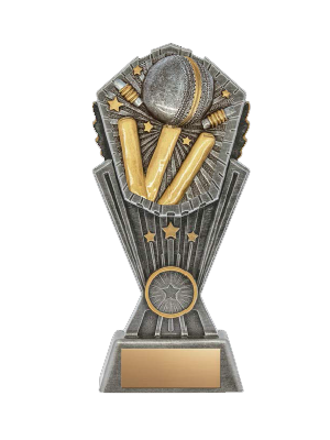 The Cricket Cosmos trophy is constructed using a resin material and is detailed in a hand painted finish, comes in three sizes.