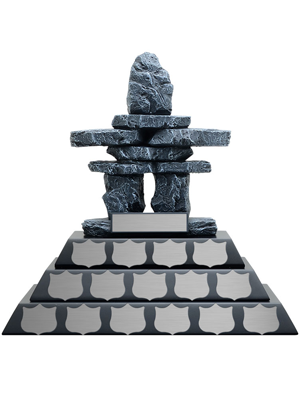 The Annual Inukshuk trophy is constructed using a resin material and is detailed in a hand painted finish. Commemorate your season with these beautifully designed resin trophies.