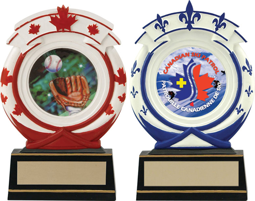 The Maple Leaf & Fleur de lys awards are constructed using a resin material and is detailed in a painted finish. Select one of our many inserts to be used to suit your specific sport. Commemorate your season with these beautifully designed resin trophies.