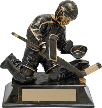 The Aztec Gold Goalie trophy is constructed using a resin material and is detailed in a painted finish with gold detailing. Commemorate your season with these beautifully designed resin trophies.