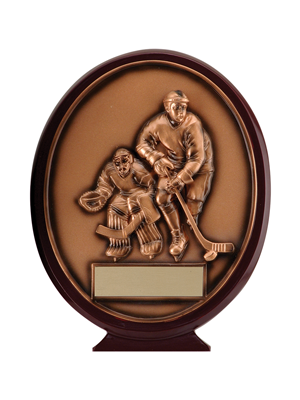 The Hockey Bronze Oval trophy is constructed using a resin material and is detailed in a hand painted finish. Commemorate your season with these beautifully designed resin trophies.