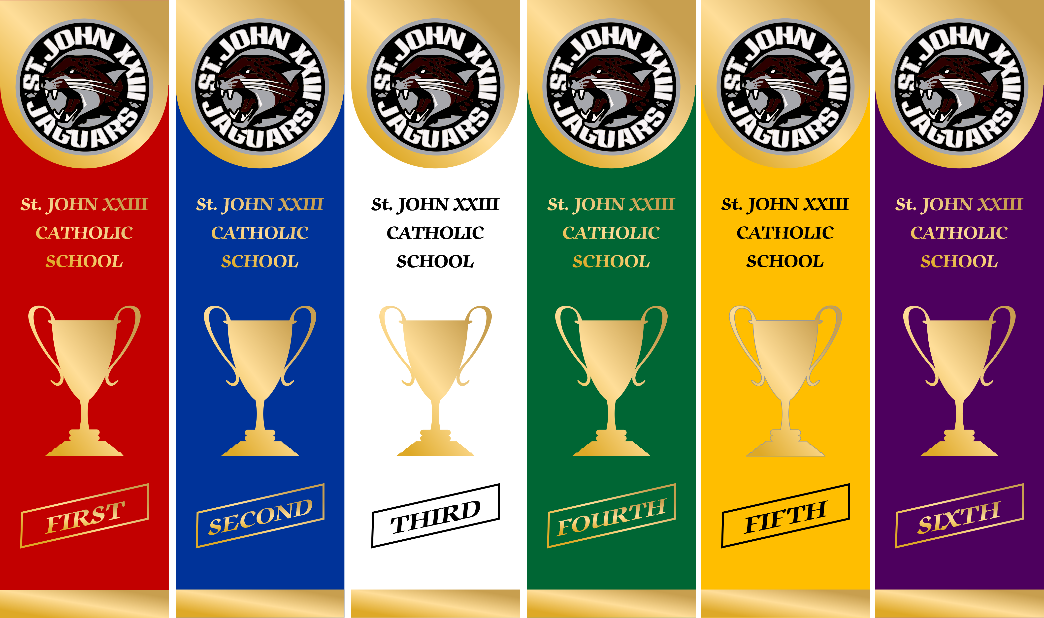 Ribbons are polyester 2" x 8" with pinked or serrated edges top and bottom. Stock generic ribbons are available for short notice events but custom ribbons may include your logo and specific event text. Ribbons are sublimated and so multiple colours are not an issue.