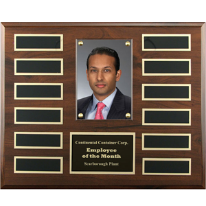 The Walnut Scroll Plaque can be used as an annual plaque with a new winner engraved each year. This is a perfect plaque for celebrating achievement or victory.