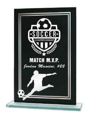 The Soccer Glass Plaque trophy is constructed using a glass material and is detailed in a hand painted finish. Commemorate your season with these beautifully designed resin trophies.