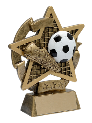 The Soccer Star Gazer trophy is constructed using a resin material and is detailed in a hand painted finish. Commemorate your season with these beautifully designed resin trophies.
